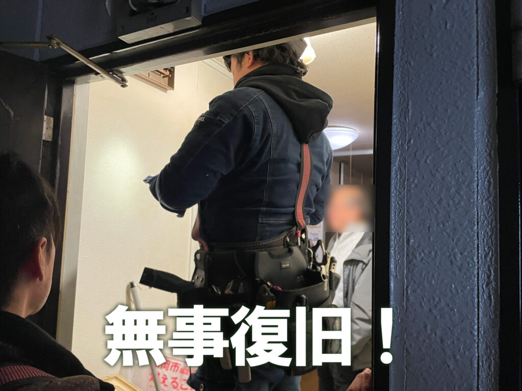 今回は小ブレーカーのみの交換で電気は復旧できました。あわせて、漏水が直るまでの間に再発しないよう、配線が水に当たりにくいように応急処置も行っています。