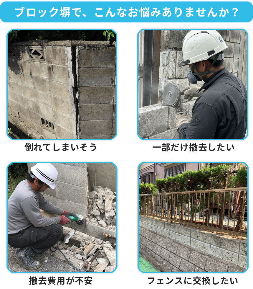 ブロック塀が傾いていたり、ヒビ割れていますが撤去できますか?