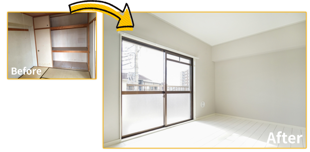 古いマンションの和室を明るい洋室に変更しました。押し入れも解体しその分広い空間へ生まれ変わりました。