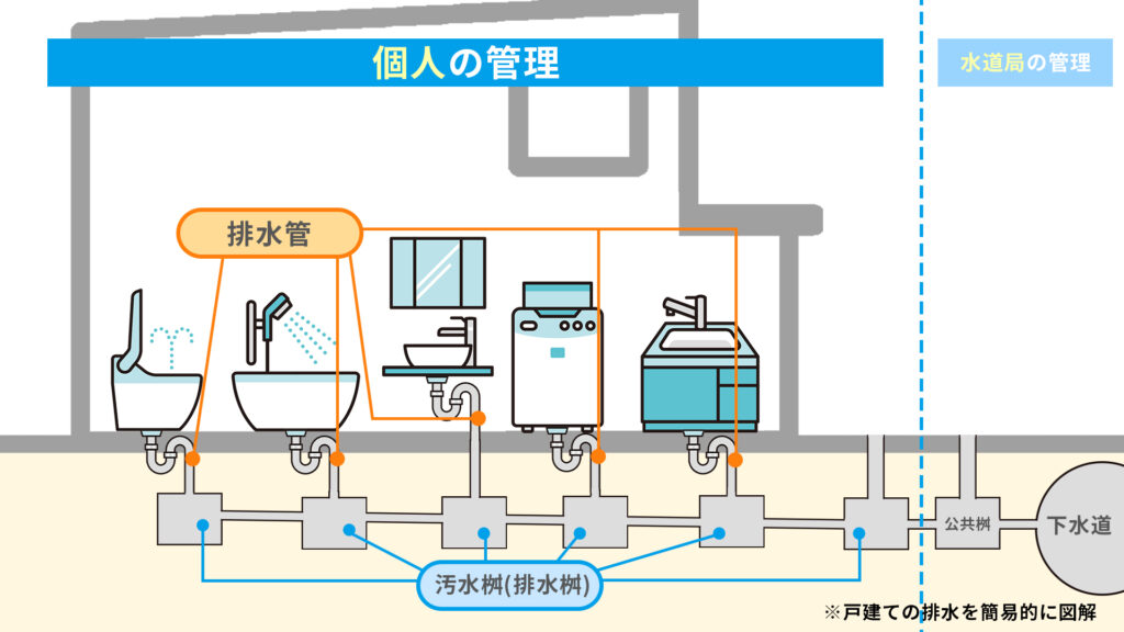トイレは流れる水の勢いが強いため、実は何か異物を落とさない限り詰まりにくい場所です。そのためトイレ以外の水回りの排水管と汚水桝を洗浄するプランです。