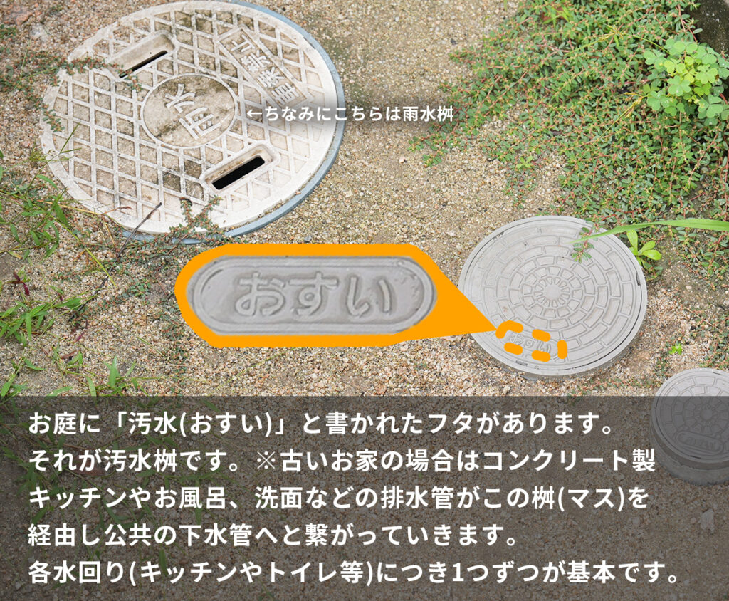 屋外の汚水桝をキレイに洗浄するプランです。屋外汚水桝の清掃のみ業者に任せたいという方向け